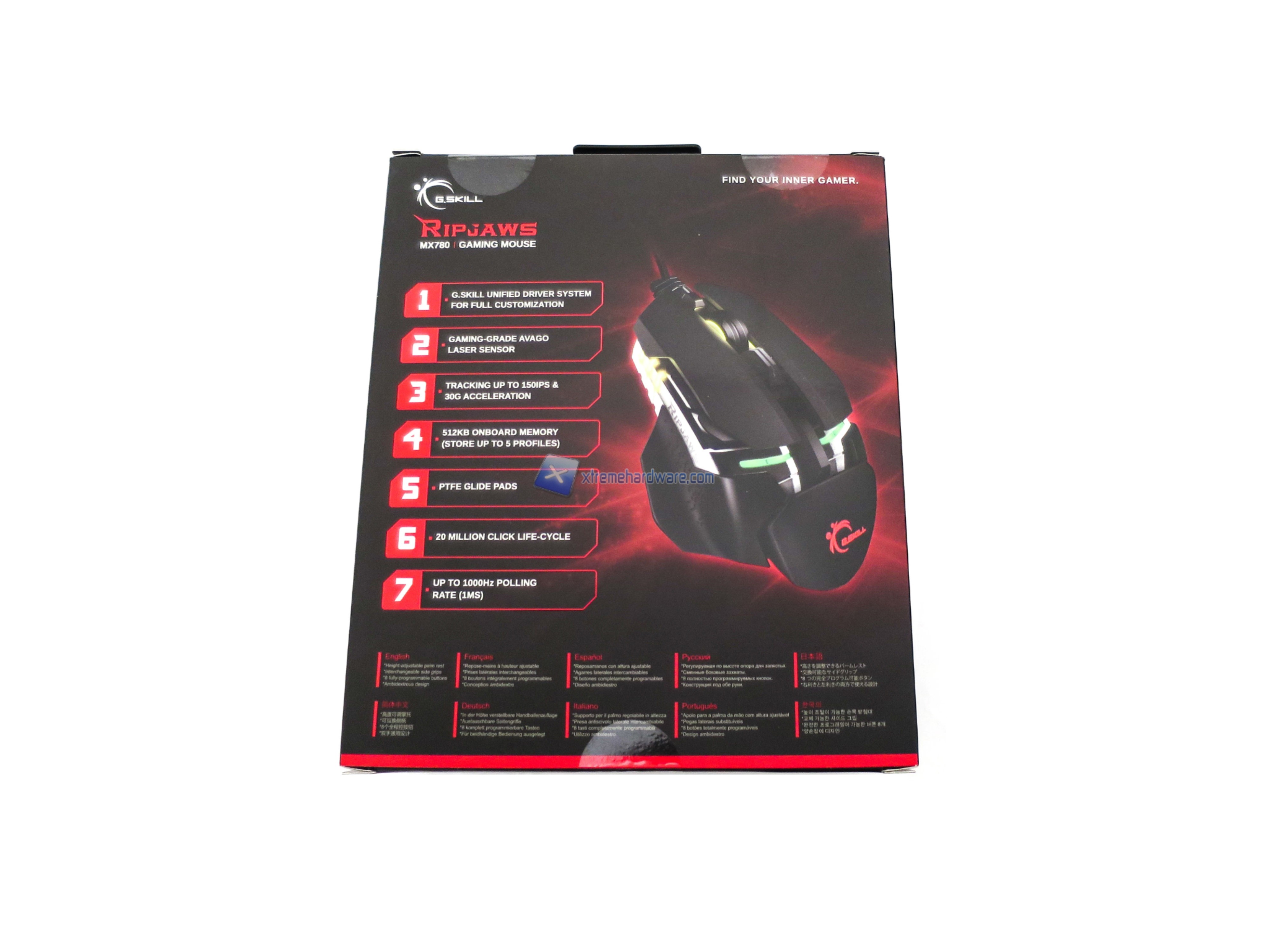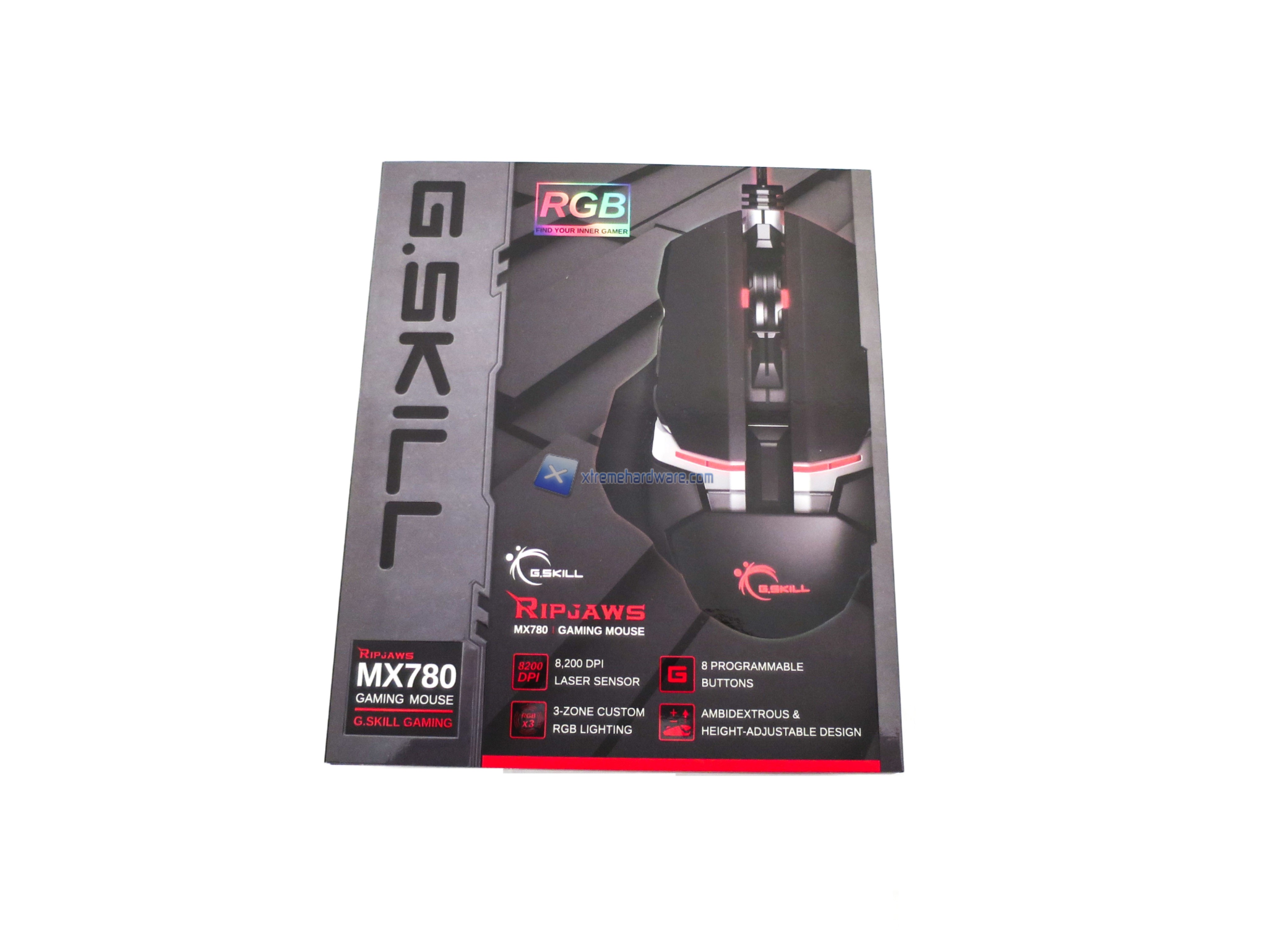 Partendo già dalla confezione in cartone possiamo vedere come il design dei prodotti G.Skill sia sempre un punto focale di interesse a cui seguono prestazioni per quanto riguarda moduli RAM e caratteristiche per quanto riguarda, in questo caso, le periferiche da gaming. Abbiamo una confezione in cartone sulla quale vengono riportate tutte le maggiori informazioni, immagini e dettagli relativi il prodotto. Nulla è lasciato al caso.