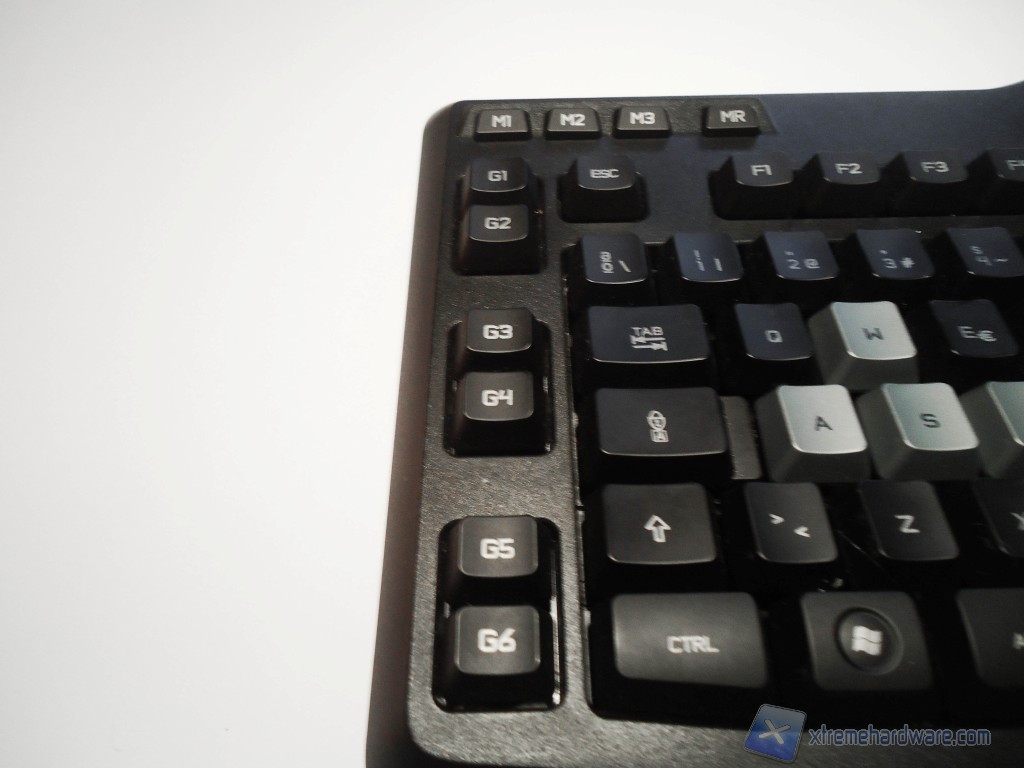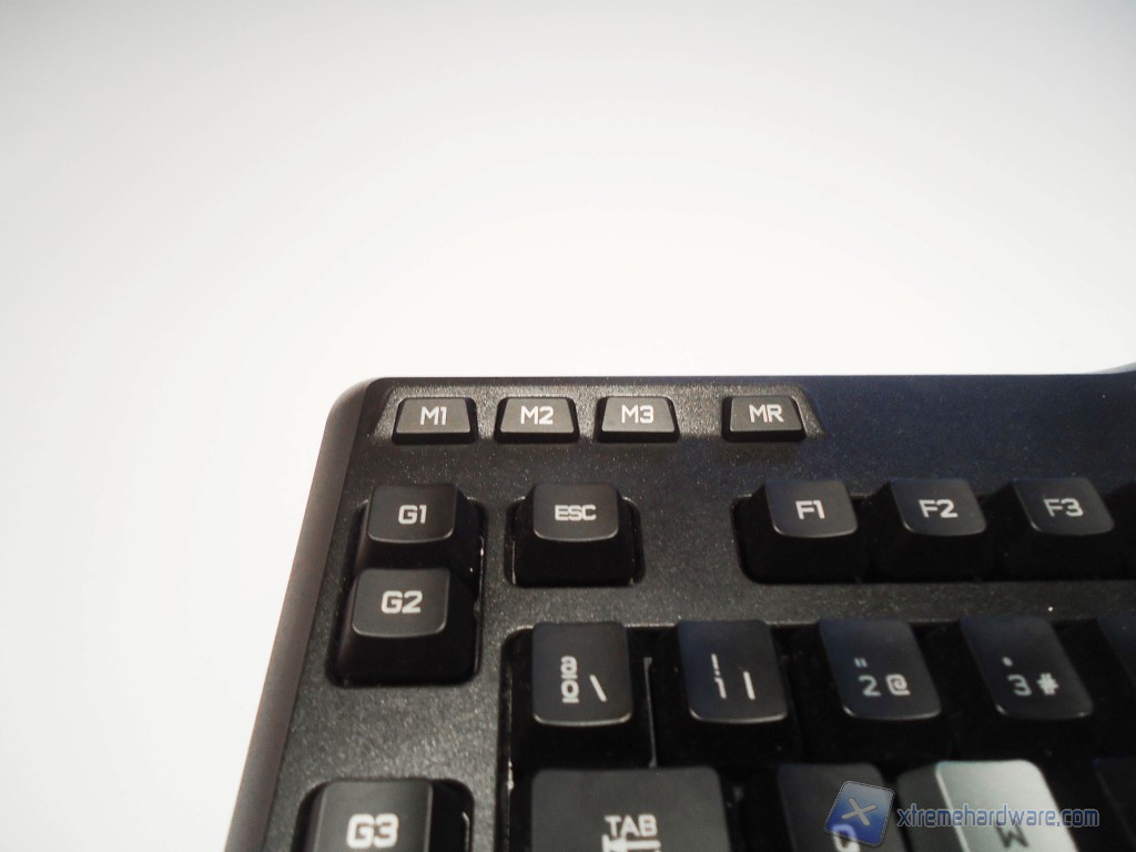 Oltre ai tasti programmabili troviamo i tasti M1-M2-M3 ed MR, che ci permettono di selezionare fino a tre profili su cui abbiamo salvato una configurazione per  in nostri tasti G. Il tasto MR (Macro Record) ci permette di salvare automaticamente su un tasto G un qualsiasi pulsante sulla tastiera, semplicemente premendo il tasto MR poi un tasto o una combinazione di tasti della tastiera, premere uno dei tasti G al quale si vuole assegnare la combinazione e infine rispingere il tasto MR.