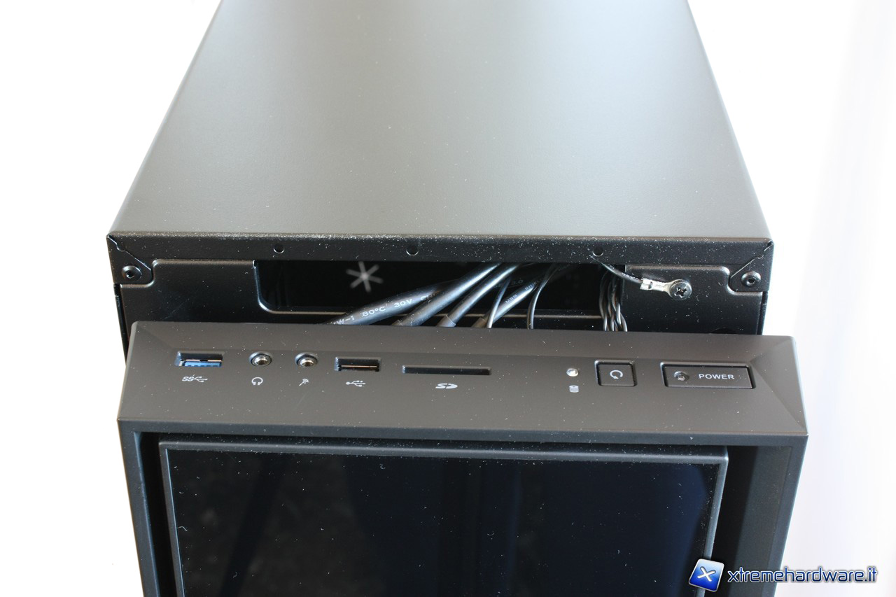 Non ci sarà bisogno di smontare completamente il pannello frontale per poter istallare le nostre unità da 5.25": i copri slot si sganceranno molto facilmente anche con il pannello montato. Precisiamo che qualora avessimo necessità di smontare la paratia, dovremo porre molta attenzione in quanto vi sono ancorati tutti i cavi del pannello delle connessioni.