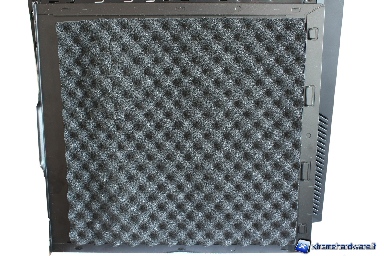 Su entrambi i pannelli è applicato del materiale fonoassorbente, proprio per ridurre al minimo il rumore prodotto dal PC. L’assenza di ventole laterali è quindi giustificata da tale funzionalità.