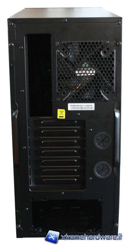 Il pannello posteriore è completamente verniciato di nero. Esso incorpora una ventola da 120 mm in espulsione, due fori per il passaggio dei tubi per un sistema a liquido, 7 slot pci.