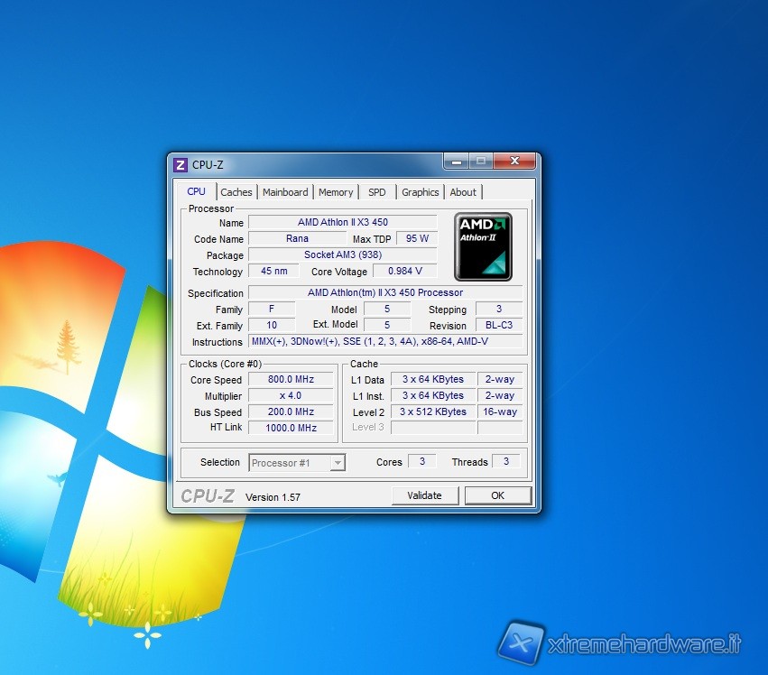 Di seguo riportiamo le frequenze ed i voltaggi dell' AMD 450 con le funzioni di risparmio energetico attive: come si nota, variando il moltiplicatore ed il Vcore in maniera dinamica, la CPU passa da appena 800 MHz e 0.9 Vcore alle frequenza di default quando posta sotto stress, ovvero 3200 MHz a 1,3 Vcore.