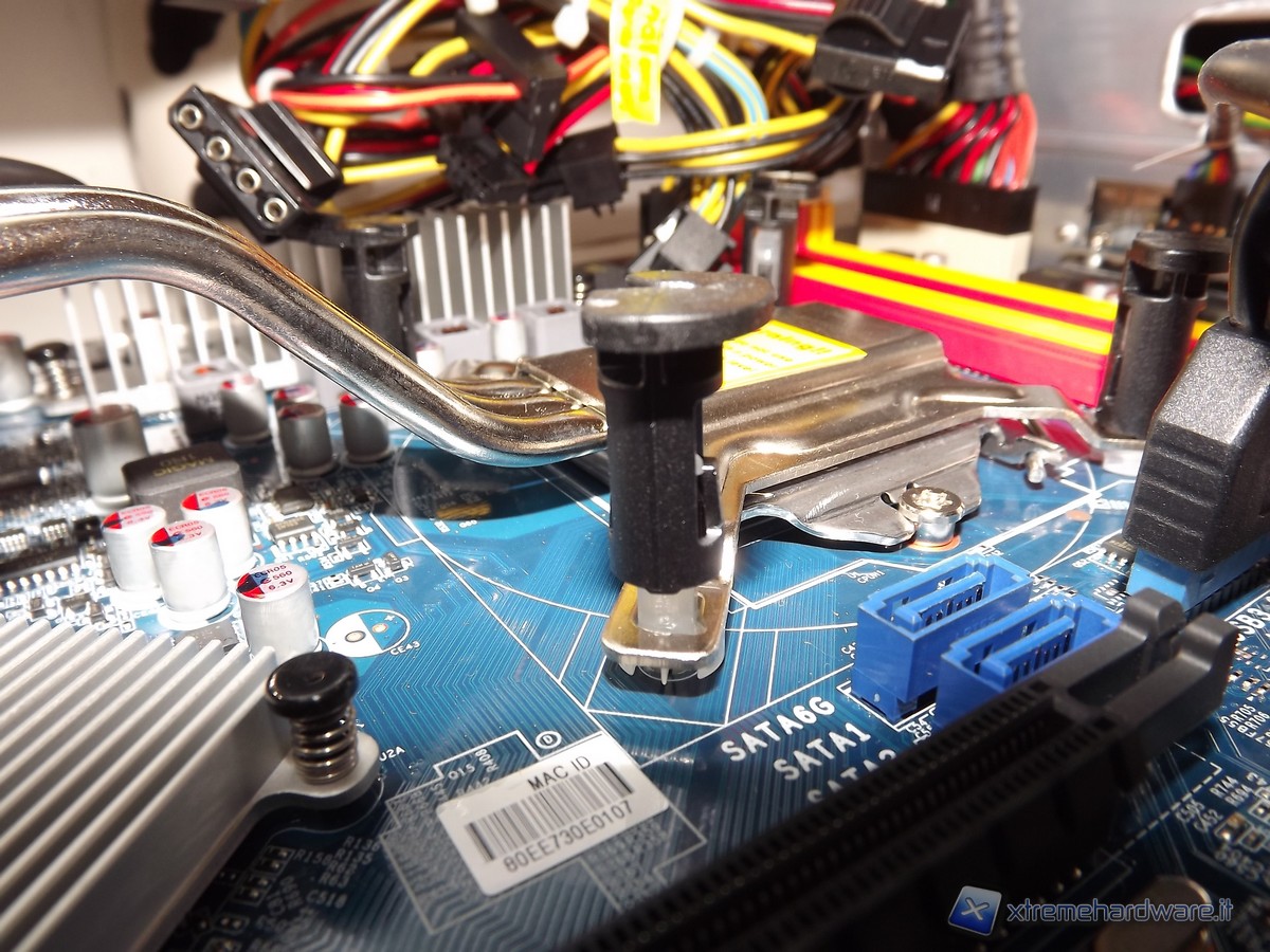 Per rimuovere il dissipatore ICE ed installare la CPU è sufficiente girare le 4 clip di fissaggio sul socket in senso anti-orario e tirare verso l'alto; sganciare il cavo che va collegato alla ventola tramite il connettore a 4pin agganciato nella scheda madre; dopo di che vanno tolte le 4 viti presenti nella parte posteriore del cabinet.