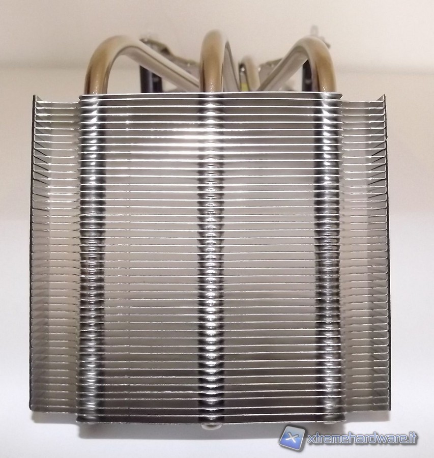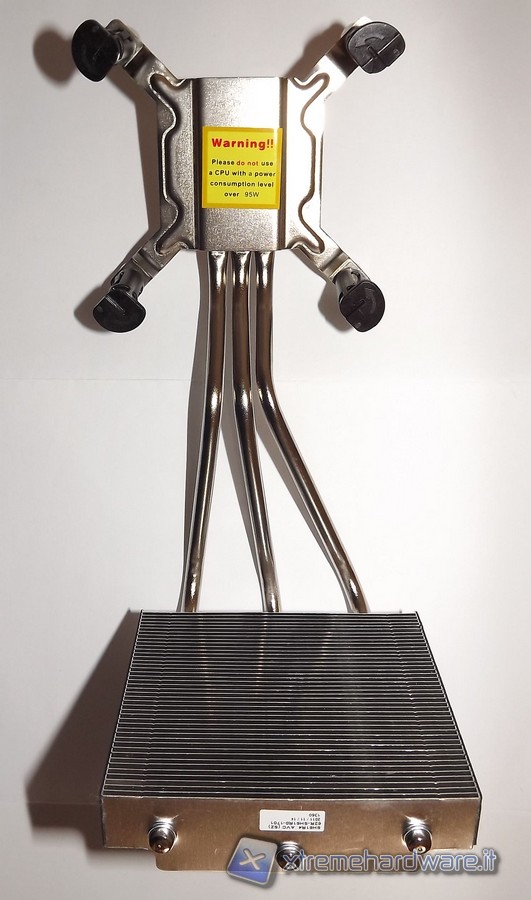 La ventola si trova protetta dentro un piccolo chassis dove è anche installata una griglia protettiva. La ventola ha serigrafata il marchio AVC, sempre prodotto a Taiwan ed è di tipo bearing idraulica con la sigla DS0922R12HP207 e connettore a 4pin, quindi in grado di essere termo regolata. Il dissipatore ICE di Shuttle è dodato di una base in rame, non lucidata a specchio; il corpo invece è in alluminio e da questa partono 3 heat-pipe che entrano nel corpo di fitte lamelle. Sia heat-pipe che pacco lamellare sono in alluminio. Nella base del dissipatore è presente un'etichetta che avverte che questo dissipatore va usato per CPU con un TDP massimo di 95W. Non è questo un problema in quanto le attuali CPU Intel di seconda generazione hanno un massimo di 95W per quanto riguarda il Thermal Design Power.