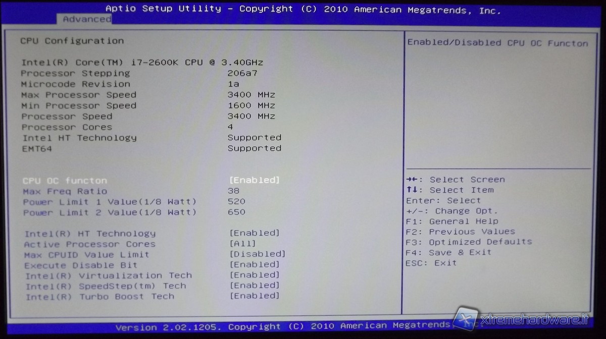 Nella sezione Advanced, come accennato possiamo agire su divesi parametri essenziali per il funzionamento della CPU, come disattivare la tecnologia Hyper Threading (HT), determinare il numero di core attivi della CPU, agire sui risparmi energetici (Speed Step), sulla tecnologia di virtualizzazione e sulla tecnologia Turbo Core. Infine possiamo controllare la frequenza finale della CPU agendo sui moltiplicatori (solo per le versioni K) e modificare il power limit della CPU. Putroppo mancano diversi parametri avanzati come la semplice regolazione della frequenza della memoria e dei timing, frequenza della IGP, variare il TDP Max ed altre funzioni che normalmente sono presenti in BIOS più avanzati.