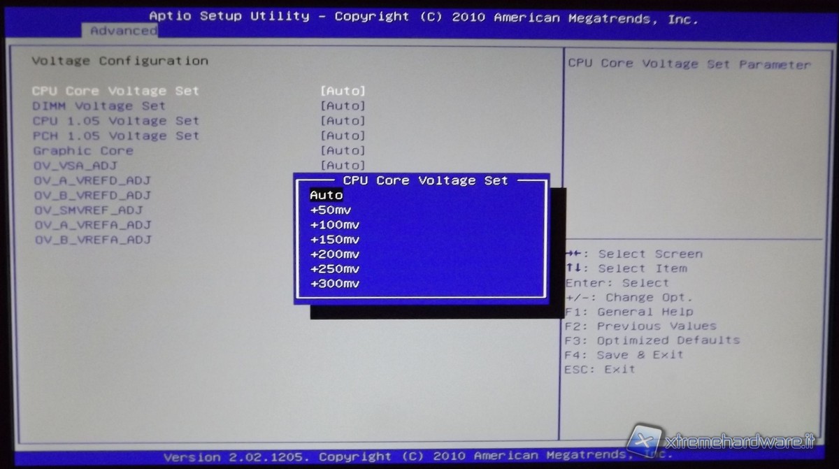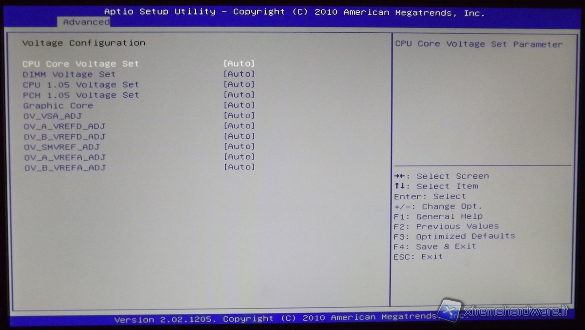 L'altra schermata utile all'overclock è quella relativa ai voltaggi di sistema (Voltage Configuration),  dove è possibile intervenire su diversi parametri, come il vcore della CPU,  delle memorie, della IGP, del VTT e del Chipset.