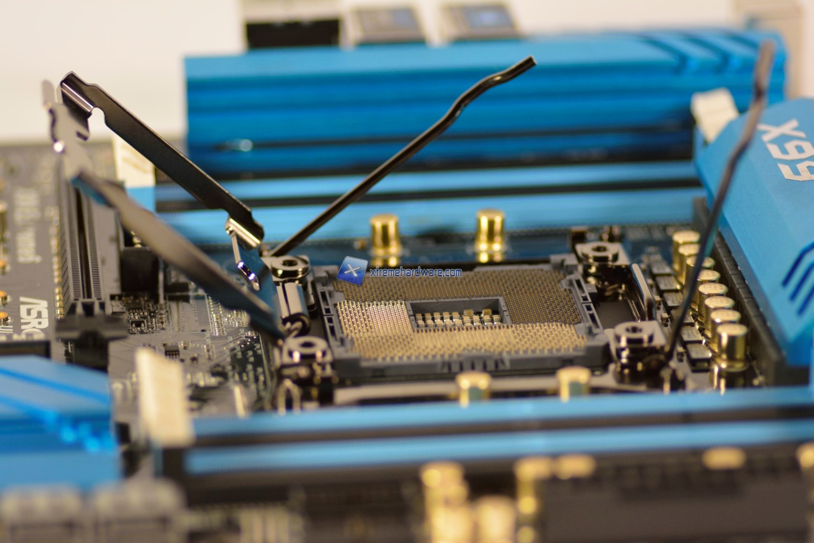 Il socket LGA2011v3 è di produzione Foxconn ed è di un color brunito lucido. Il sistema di chiusura è lo stesso utilizzato dalla precedente serie X79.