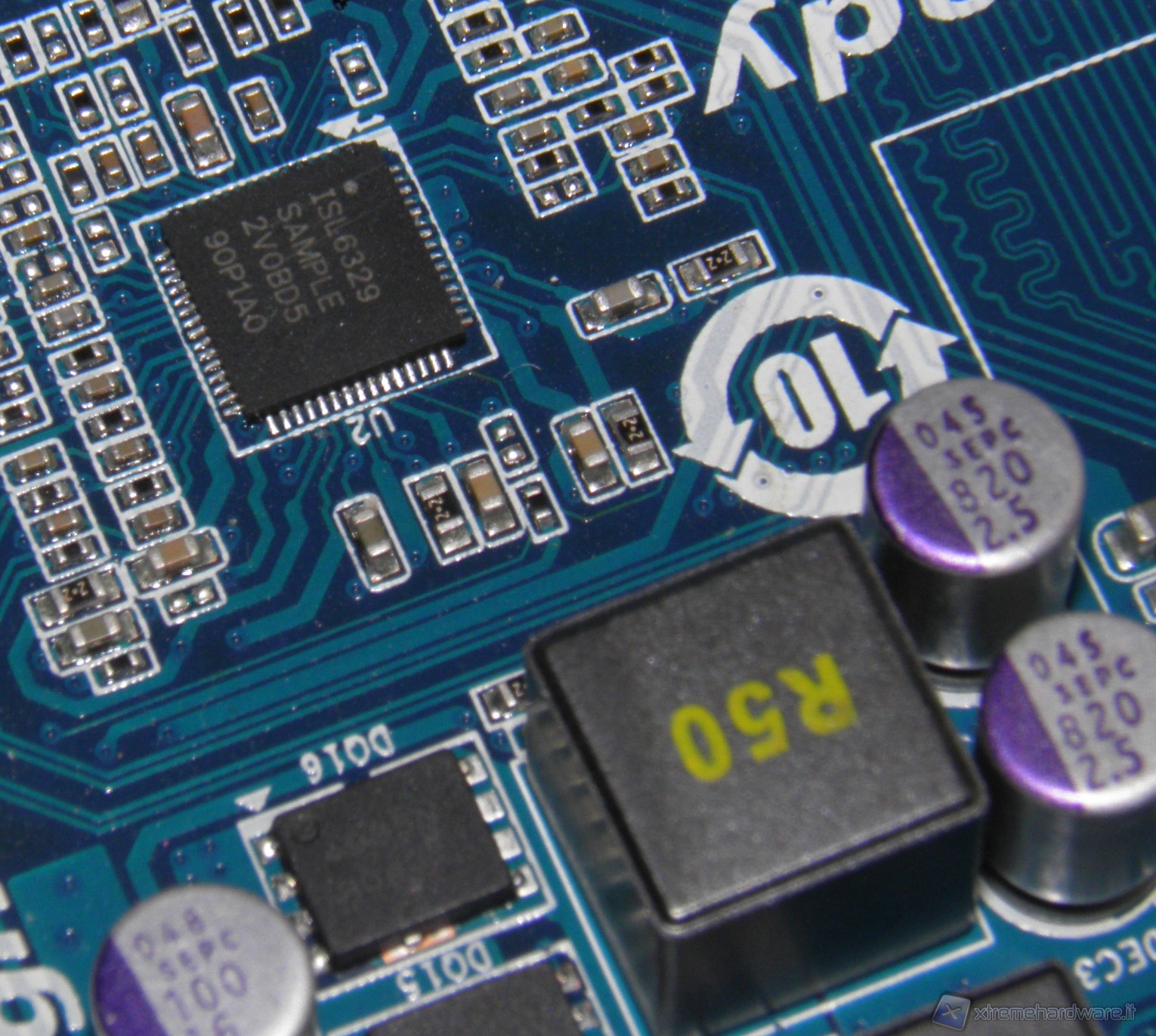 InterSil ISL6329, controller PWM di tipo dual plane. In grado di controllare fino a 6 fasi con Driver esterni o 2 fasi con i Driver interni.