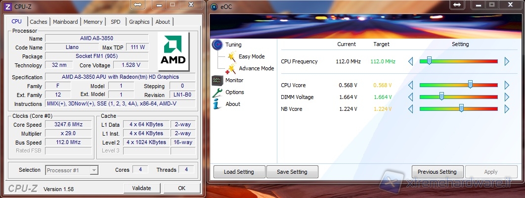 Il test è stato effettuato con un AMD A8-3850 che possiede un moltiplicatore bloccato verso l’alto, impostato per default a x29 avente un BUS pari a 100MHz.