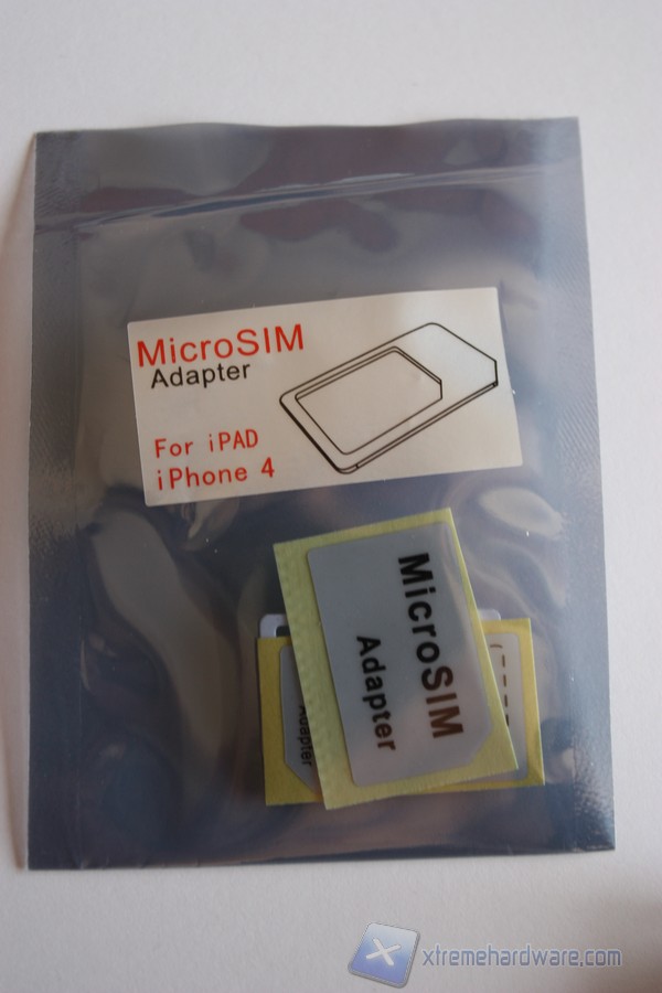 Una volta estratto ci troviamo di fronte alla cover, ad una bustina sigillata con gli adattatori micro sim per iPhone ed iPad ed alla bustina, sempre sigillata, con il vero e proprio Dual SIM.