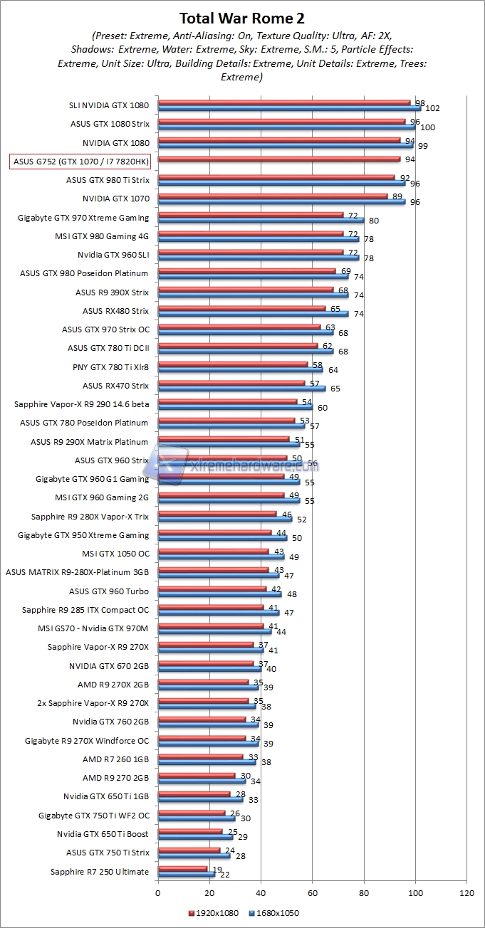 I test gaming così come i test precedenti sono stati I test sono stati eseguiti utilizzando come Sistema Operativo Microsoft Windows 10 x64. Il processore i7 7820HK come la GPU GTX 1070 sono stati utilizzati in modalità Standard.